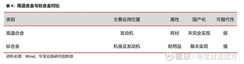 3、國(guó)產(chǎn)化程度不同:目前國(guó)內(nèi)航空鈦合金基本實(shí)現(xiàn)國(guó)產(chǎn)化,而高溫合金設(shè)備工藝仍存在進(jìn)一步改進(jìn)空間,尚未完全實(shí)現(xiàn)國(guó)產(chǎn)化,為進(jìn)口替代留下充足空間,尤其是變形高溫合金國(guó)產(chǎn)化率提升空間相對(duì)顯著;