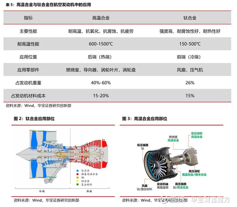 2、耐用品VS耗材:鈦合金應(yīng)用以冷端承載靜止件為主,偏耐用品屬性,,而高溫合金以高溫轉(zhuǎn)動(dòng)件為主偏耗材屬性;